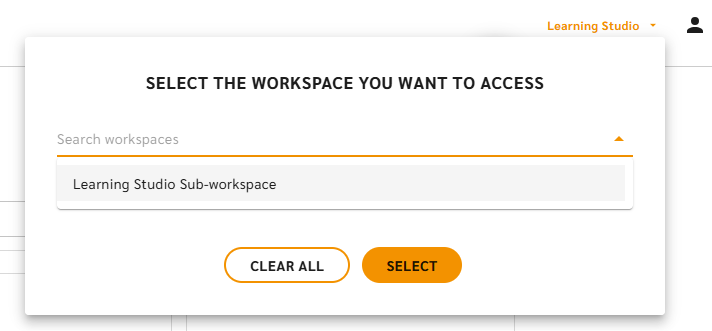 Search results can be filtered using the Type dropdown to display specific content types such as: